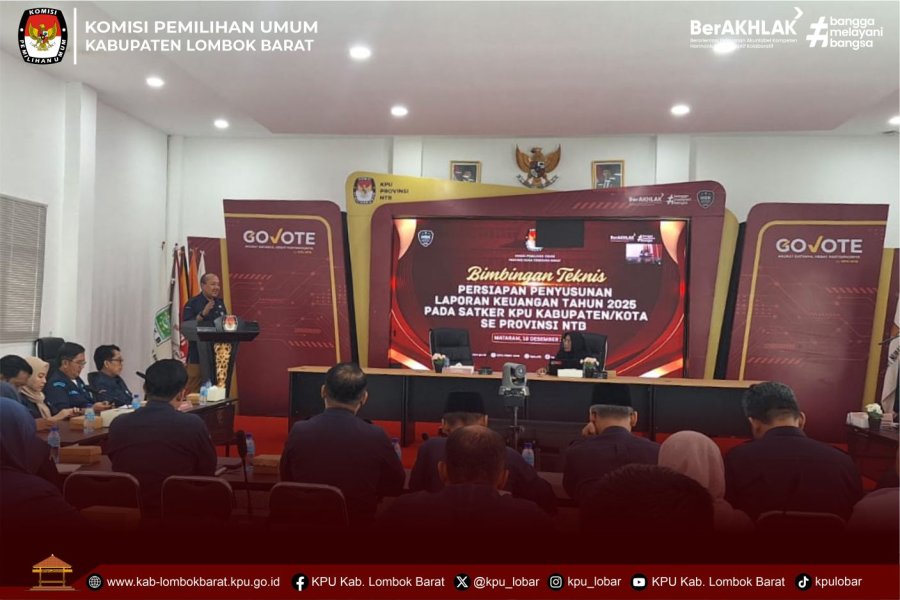 #TemanPemilih KPU Kabupaten Lombok Barat mengikuti kegiatan Bimbingan Teknis Persiapan Penyusunan Laporan Keuangan Unaudited Tahun 2025 bagi Satuan Kerja KPU Kabupaten/Kota se-Provinsi Nusa Tenggara Barat. Kegiatan ini dilaksanakan secara hybrid, yaitu luring dan daring, guna memastikan keterlibatan seluruh satuan kerja secara optimal, Selasa (17/12).