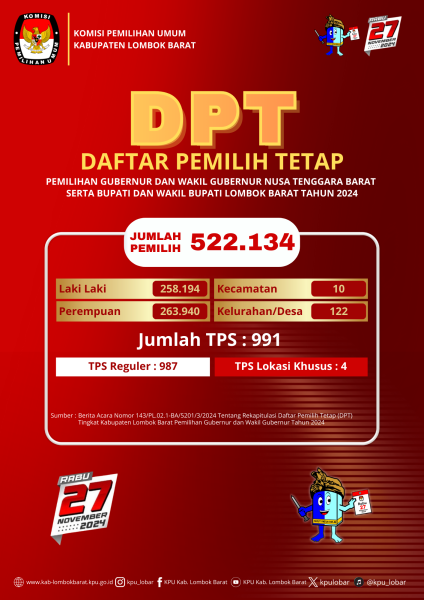 DPT PILKADA 2024 Kamis, 19 September 2024 11:00 383 Unduh BA DPT PILKADA 2024 Bagikan: Dilihat 383 Kali.